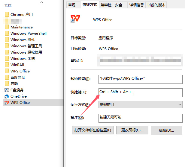 今天在用其它软件的时候使用到ctrl+shift+alt+<快捷键发现没有用,变成了快捷启动wps的了,于是找了资料查到了解决方法。